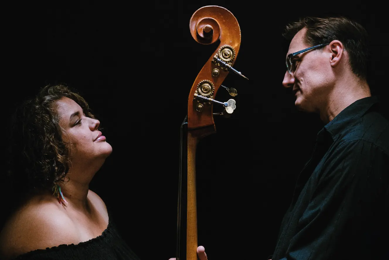 Ridina Ahmedová začínala svou hudební cestu zpíváním standardů po jazzových klubech, ale po chvíli ji tato žánrová škatulka začala být těsná. V roce 2003 se tedy odhodlala k tomu, o čem už dlouho snila: zkusit obstát na jevišti sama. Za sólový projekt Hlasokraj, kombinující projekci a živý koncert, získala ocenění Next wave v kategorii Objev roku. V roce 2006 vyšlo úžasné sólové CD Hlasem. V současné době vystupuje občas sama, především ale v duu s basistou Petrem Tichým jako HLASkontraBAS. Petr Tichý se během studia na Konzervatoři Jaroslava Ježka propojil s pražskou jazzovou scénou, kde v podstatě působí dodnes. Kromě jazzu (např. Marek Novotný Quintet, Paul Novotny Trio) se věnuje i elektronickým projektům – hostoval na albu Bingriwingri bratří Orffů, podílel se na albech i koncertním provedení projektů Floex, je dlouholetým členem skupiny Alvik a spolupracoval se slovenskými Veneer. Doprovázel a doprovází řadu zpěvaček, mj. Tonyu Graves, Feng Jun Song a další. Po mnoha letech, kdy se Ridina s Petrem potkávali v různých sestavách, nazrál čas zkusit hrát autorskou hudbu jen takhle ve dvou, akusticky, čistou, obnaženou a bez obvyklého vystlání dalšími doprovodnými nástroji. I když popravdě hrají spíš ve třech – je tu ještě Loopstation, přístroj umožňující vrstvit přes sebe stopy kontrabasu i hlasu.